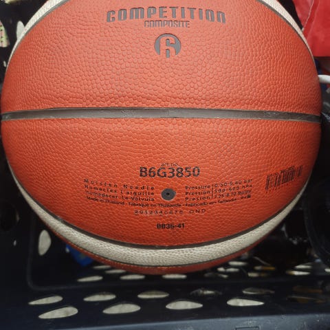 Basketboll med märket molten. Bollen är storlek 1.