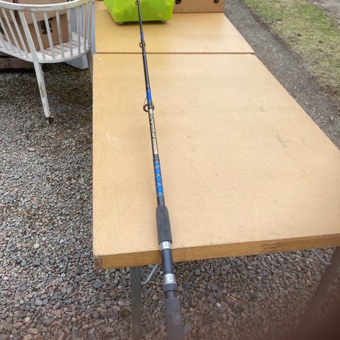 Abu Garcia Black Max fiskespö med tillhörande multirulle i svart utförande. Spöt är tvådelat och varsamt använt. Säljer fiskespöt för jag inte riktigt vet hur jag ska använda det och känner att Multirulle inte är något för mig.