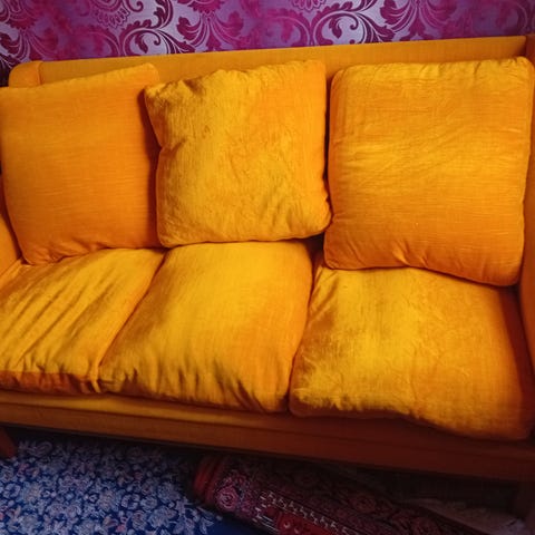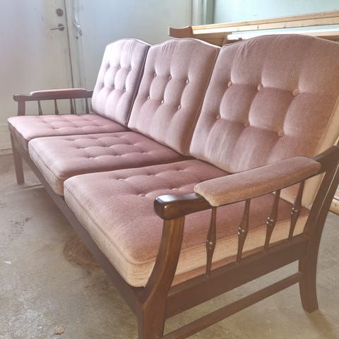 Fin retro 3-sitssoffa från Stjernmöbler i klassisk 60/70-tals stil. Soffan har en varm brun/orange nyans som ger en härlig vintagekänsla och passar perfekt i både retro- och moderna hem.