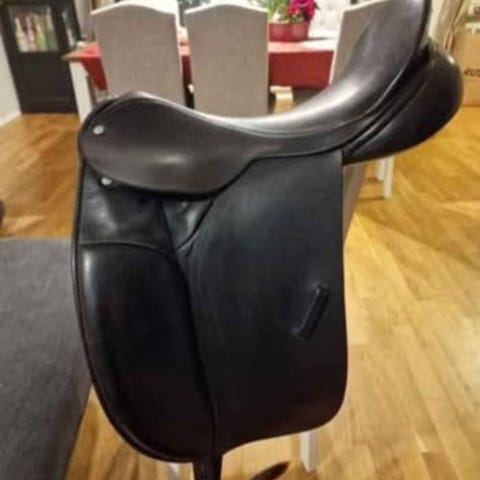 Fin dressyr sadel 17,5 sits och x-vid bom. Inköpt hösten 2022 från sadelmakeri, väldigt sporadiskt använd. Fin i stoppning mm. behöver minska ner antalet sadlar hemma. Alltid förvarad med sadel skydd. Riktigt härlig sadel att rida i. Suttit på frieser.