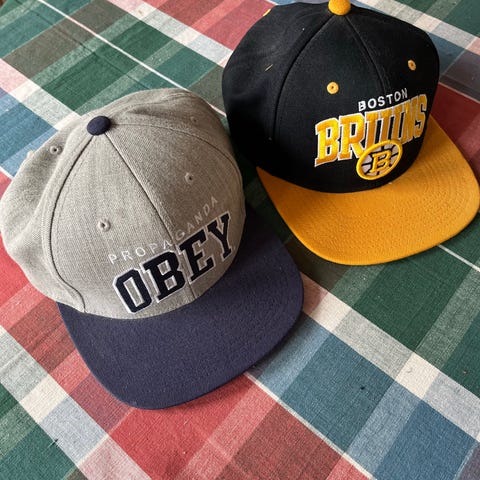 Andra kepsen vit och mörkblå med texten Brooklyn och nyc med små bokstäver på pannan. Anpassningsbar storlek.
