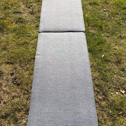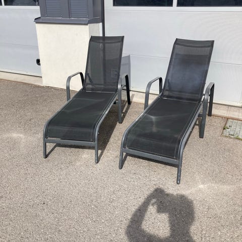 Fällbar baden baden solstol i grön med vit metallstomme. Stolen har armstöd och justerbar rygg för bekväm lutning. Den är hopfällbar för enkel förvaring och transport, lämplig för användning på altan, balkong, trädgård eller camping. Solblekt baksidan.