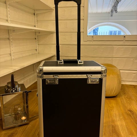 Svart vagn med lådor på hjul plast