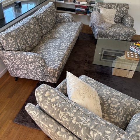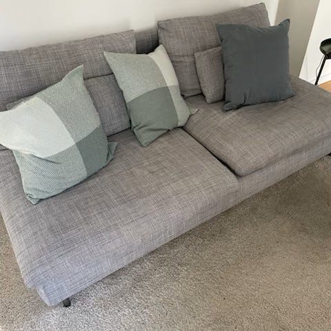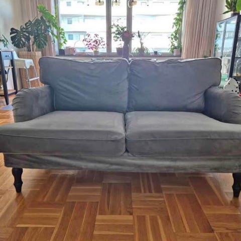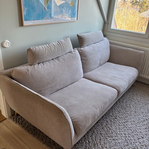 Säljer en soffa och en fåtölj IKEA Stocksund. Båda har överdrag från Bemz. Soffan har ett jättedyrt linnetyg som är något skavt på ena sittdynan och fåtöljen ett sammetstyg i jättefint skick. Medföljer gör även ett blått originalöverdrag till soffan och blåvitrandigt tyg till fåtöljen i jättefint skick.