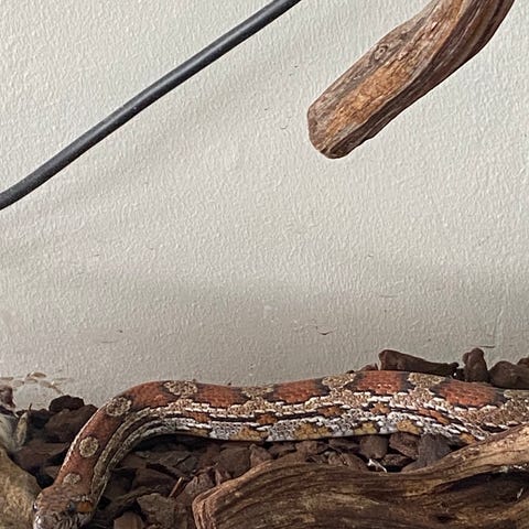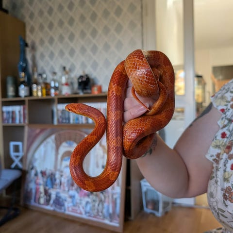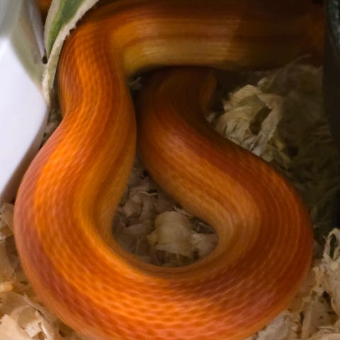 Äter bra och bajsar, ömsar och är precis som den ska vara.
