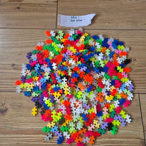 Paketet innehåller även Plus Plus grundbyggset med färgglada byggbitar och 2 st gröna byggplattor i mycket fint skick. Setet innehåller små plastbitar i flera olika färger som kan sättas ihop till två- och tredimensionella figurer. Med följer även en instruktionsbok med förslag på modeller att bygga. Passar för barn som vill träna finmotorik, form- och färgigenkänning samt kreativt byggande. Rekommenderad ålder från 5 år.