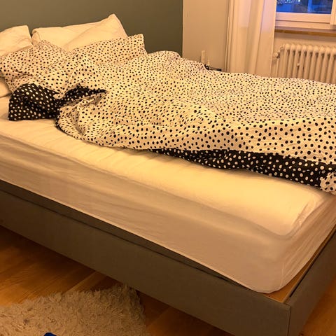 Sängen är i bra skick men har synliga bruksspår, fungerar dock felfritt och är redo att användas direkt.