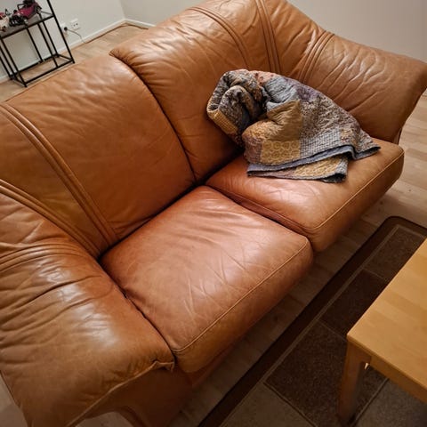 Soffa tresits med divan/sittpuff bortskänkes mot upphämtning