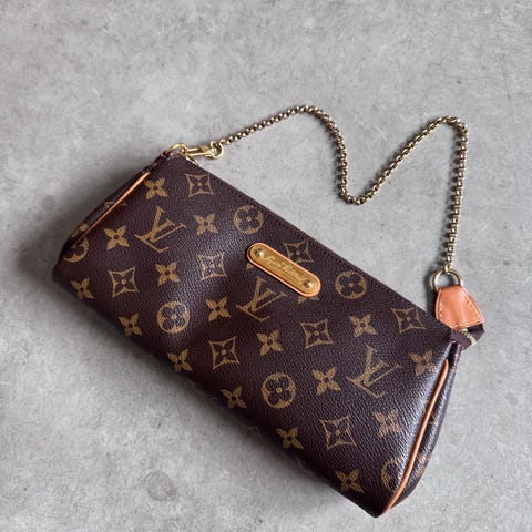Louis Vuitton axelremsväska för kvinna i brunt monogrammönster. Väskan har en större huvuddel med dragkedja och innerfack samt en mindre avtagbar ficka framtill, även den med dragkedja. Medföljer gör en rund mynt- eller småvaruficka som fästs på axelremmen. Väskan har justerbar, bred axelrem i textil samt en kedjerem i metall, vilket ger flera bärsätt, exempelvis crossbody eller över axeln. Materialet är ett tåligt yttertyg med klassiskt monogramtryck och detaljer i läderliknande material samt metalldetaljer i guldfärg.