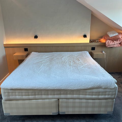Säljer en begagnad hösten 2000T som tillhör deras lyxigaste modell. Mått 210x180cm, oljade ekben med aluminium sko. Sängen har blivit smutsig efter en flytt annars en helt fantastisk begagnad säng med många år kvar. Nypris idag 700.000:-