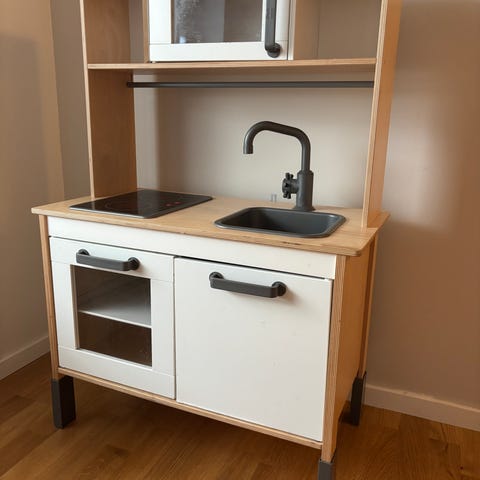 Säljer detta leksakskök som endast är använt en dag då barnet som fick det är för stor för det.