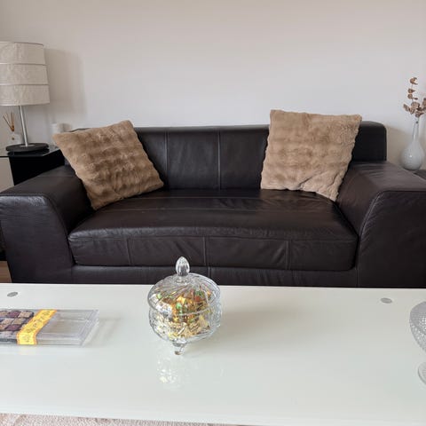 IKEA Landskrona 2-sits soffa i läder med träben.
