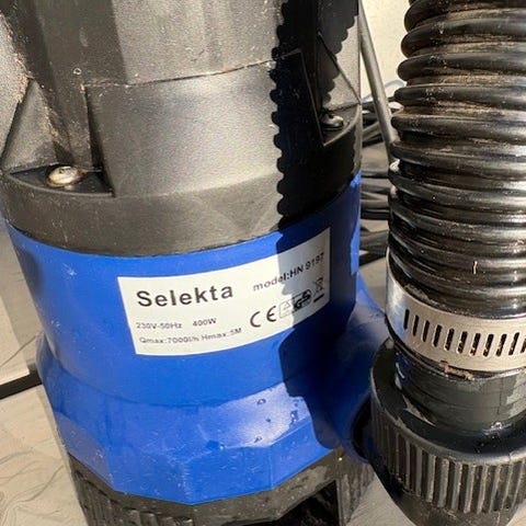 Einhell trädgårdspump i svart och röd färg. Knappt använd. Elansluten pump med handtag för enkel förflyttning. På bilderna syns pumpen tillsammans med slang, elkabel och originalkartong. Lämplig för bevattning och vattenförflyttning i trädgård eller liknande användningsområden. Tekniska data och exakta prestanda framgår av märkplåten på pumpen och i medföljande dokumentation.