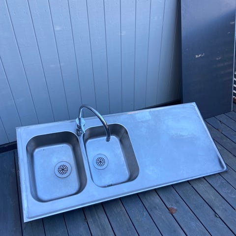 Köksskåp med bänkskiva och dubbel diskho rostfritt stål vit