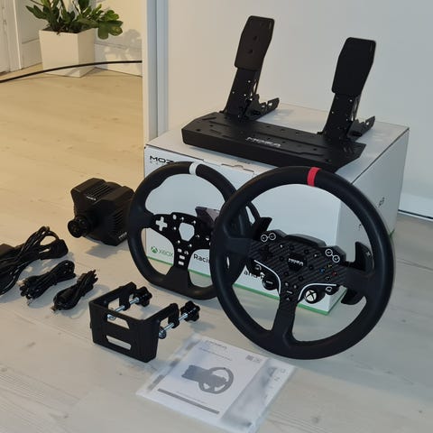Moza R3 Racing ratt och pedaler för racingspel. Setet består av en ratt med flera knappar och reglage samt en pedalbas med tre pedaler för gas, broms och koppling. Färg huvudsakligen svart. Avsett för användning som gamingrattset till dator eller spelkonsol beroende på kompatibilitet. Levereras med kablar enligt bild. Thrustmaster TH8S ingår i priset