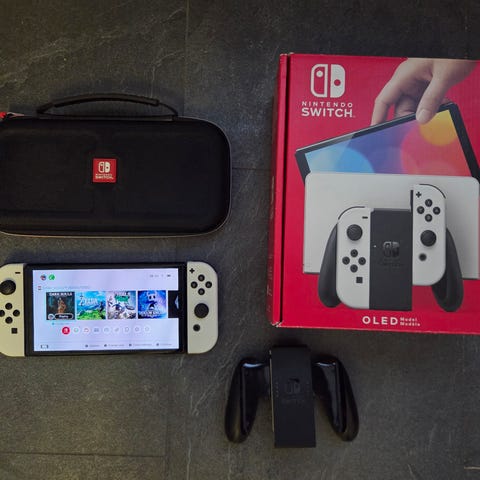 Nintendo Switch i bra skick med laddstation + extra kontroller.