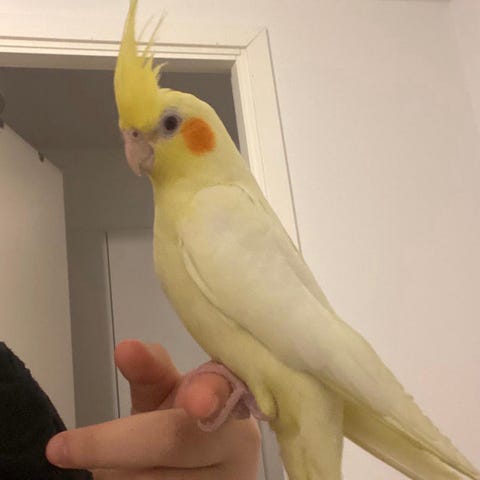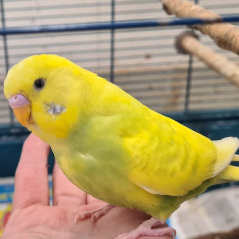 Denna gula undulat är ca 1 år gammal. Hon är duktig på att flyga och sitter gärna på fingret eller axeln. Buren ingår i priset. Även mat för ca 2 mån.