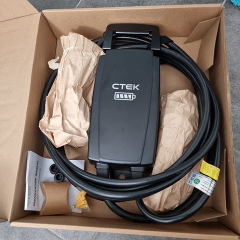 Laddkabel för elbil med integrerad kontrollbox. Kabeln har schukokontakt för anslutning till vanligt vägguttag och typ 2‑kontakt mot bilen. Gul kabel med svart kontrollenhet och anslutningar. Avsedd för laddning av elbil eller laddhybrid via hushållsuttag. Passar för användning i garage, carport eller vid parkeringsplats där vägguttag finns tillgängligt.