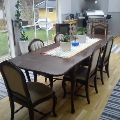 masivt matbord i ek höjd 75 bredd 90 längd 1.40 inga skador men kan behöva lätt slipning och lite olja bordet finns i Mariefred