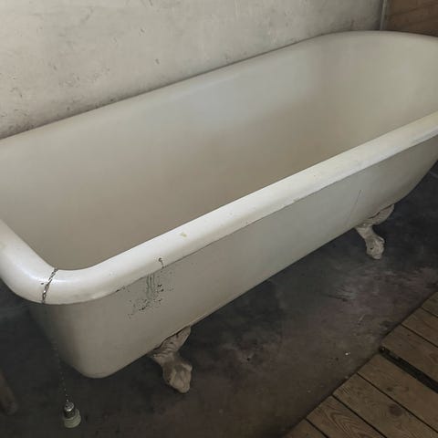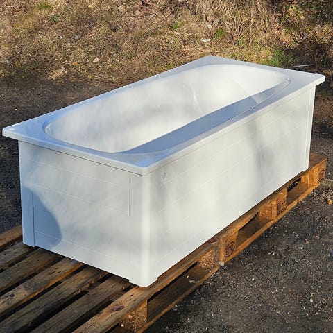 Badkar från Gustavsberg i måtten 160x70. Varit inbyggd så därav silikonrester kvar på kanterna. Även silikon kvar i badkaret som såklart går att få bort men jag orkade inte. Ovanligt mått