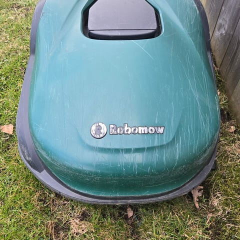 Robomow inköpt 2020 använd och servad 6 säsonger. Kraftiga knivar som klipper utanför hjulen ca 60 cm brett, blir bra kantklippning. Nyinköpt kabel (250m), kabelpinnar och skarvkontakter medföljer liksom dokumentation, manual etc. Kan köras via mobilappen eller fjärrkontrollen.