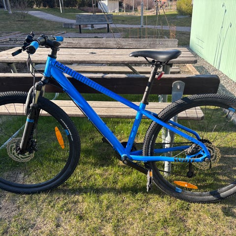 Cykeln har en blå aluminiumram med rak ovansida och relativt låg instegshöjd. Utrustad med rakt styre och platta pedaler samt skivbromsar fram och bak. Passar för cykling på grusvägar, stigar och vardagscykling. Sadel och styre är anpassade för en upprätt och stabil hållning . 8 växlar .