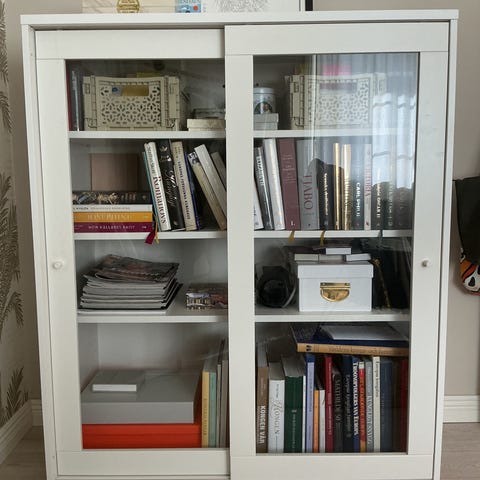 Bokhylla med skjutdörrar i glas