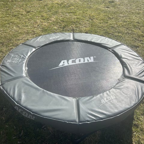 Oval stor studsmatta i svart ( orbit large) med skyddskant runt hoppduken. Studsmattan står på ben i metall och har flera fjädrar under duken. Alla fjädrar är hela / ingen eller mycket lite rost. Extra fjädrar finns. En stege i metall med plaststeg ingår för enklare åtkomst. Passar för utomhusbruk i trädgård eller på tomt. Skyddsnätet saknas men finns som reservdel hos Trampolinspecialisten för ca 1900kr. Toppstag för metallrören saknas på upp till 3 stolpar. Glasfiberstavar behövs oxå kostar 699kr. Reservdelar finns hos trampolinspecialisten. Studsmattan är en kvalitetstrampolin som ny idag kostar ca 15.000kr. Du monterar själv ned trampolinen.