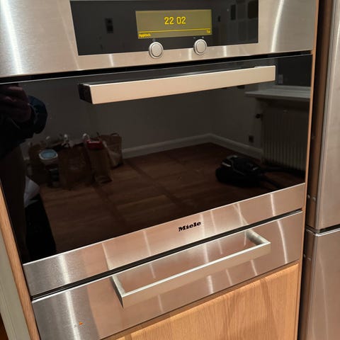 Inbyggd ugn från Smeg och mikrovågsugn från Electrolux i rostfritt stål för montering i högskåp.