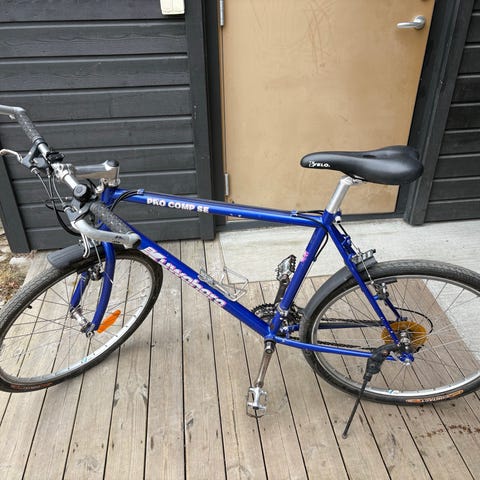 En fin, lätt och snabb bike med ALU-ram, Shimano komponenter runt om, 21 vxl med MicroShift reglage och Biopace kransar fram, samt med bar-ends, stöd och Continental Sportcontact däck 32-559.