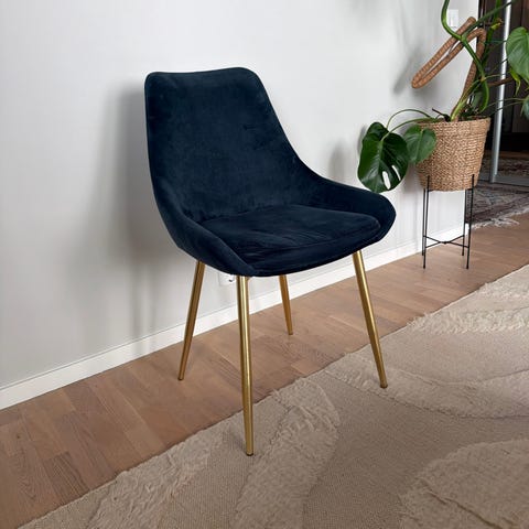 Vackra matstolar i gråbeige sammet med gedigna ben i krom.
