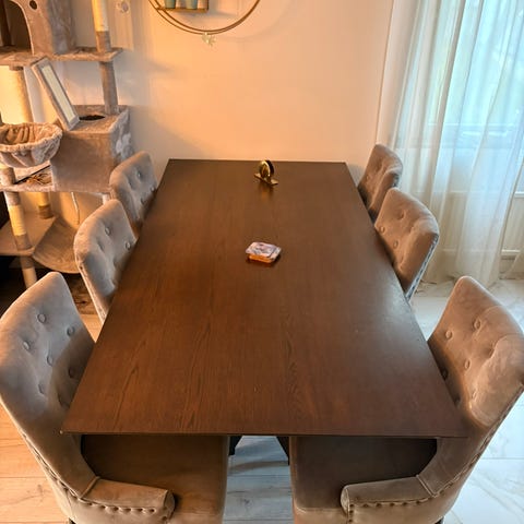 Har även en soffgrupp i samma märke och tyg/ färg till salu. Se även den annonsen så kan ni få både stolar och soffgrupp snyggt matchande.