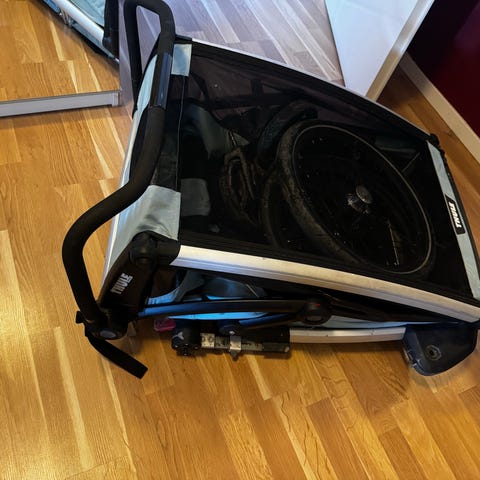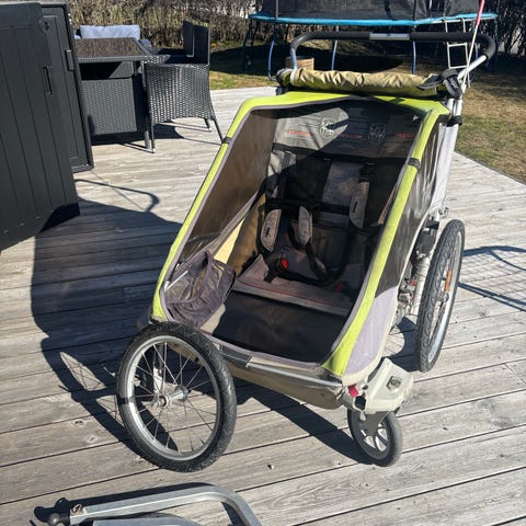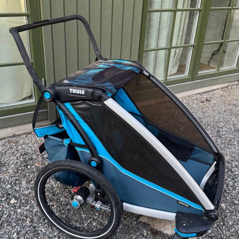 En Thule chariot cross 2 som använts en handfull gånger då vi fick ett andra barn oväntat och fick köpa en dubbelvagn istället.