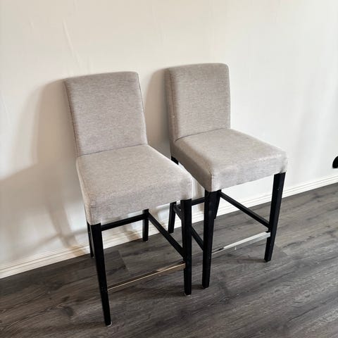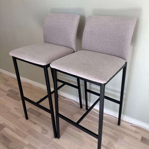Säljer två stilrena barstolar från Mio i mycket fint skick – i princip som nya. Bekväma med tygsits och stabila ben med fotstöd.