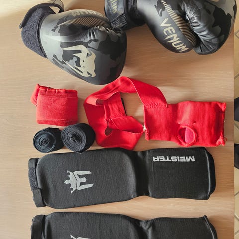 Olika handskar, benskydd och spaekmits och mer. Billigt! Skriv till mig vad du ville köpa.