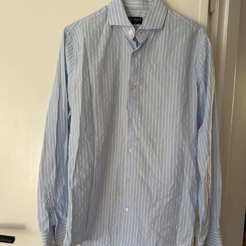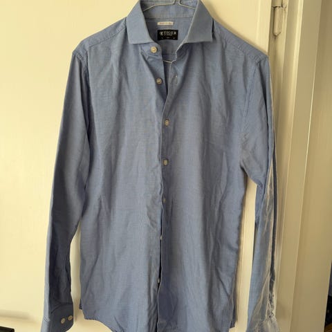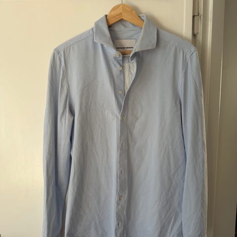 Enfärgad ljusblå skjorta från Tiger of Sweden. Slim fit modell med bred krage. Stilren och tidlös.