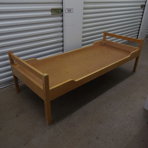 Juniorsäng. Har stått i ett varmluftsförråd ca 20 år. Bra skick för sin ålder.