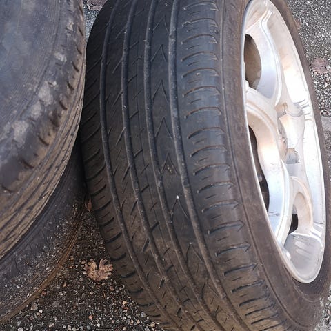 Michelin däck med fälgar. Sommardäck monterade på silverfärgade fälgar, uppsättning om fyra hjul. Passar personbil. Mönsterdjup och exakta dimensioner framgår inte av uppgifterna och bör kontrolleras vid intresse.