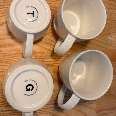 2 stycken Höganäs kaffekoppar med fot i gult och mörkblått. Nyskick