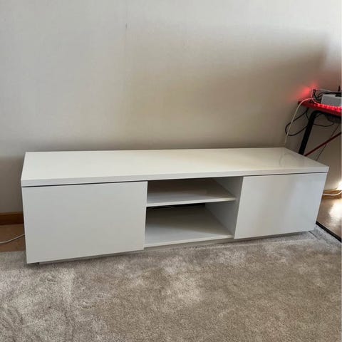 Snygg TV bänk i fint skick enligt bilder. Bredd 95 cm, höjd 32 cm och djup 40 cm. TV bänken finns i Abisko men kan tas till Kiruna vid intresse.