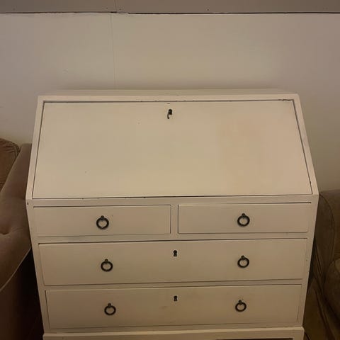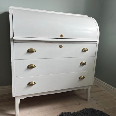 Sekretär. Perfekt för den lilla arbetsplatsen med bra förvaring. Hål är urtaget på baksidan för sladdar.