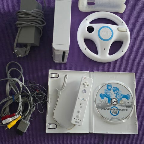 Konsolen är i gott skick, har testads och fungerar som den ska. Den levereras med en Wii-handkontroll, en Nunchuck och alla nödvändiga kablar samt en HDMI-adapter så att du kan ansluta konsolen till en smart-TV.