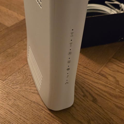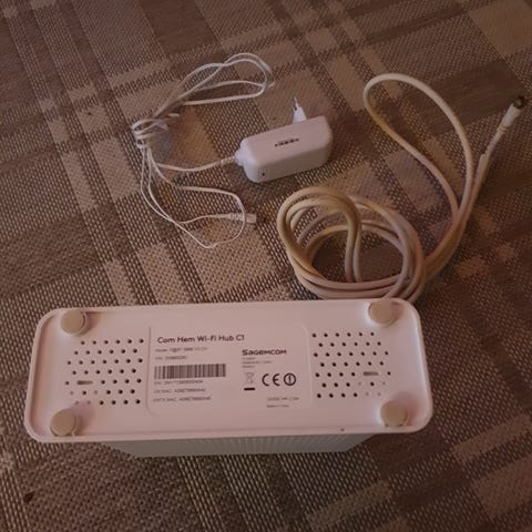 Sagemcom WiFi Hub C2 router i vit färg. Trådlös router för hemnätverk med ventilationsöppningar på sidor och ovansida samt indikatorlampor på framsidan.