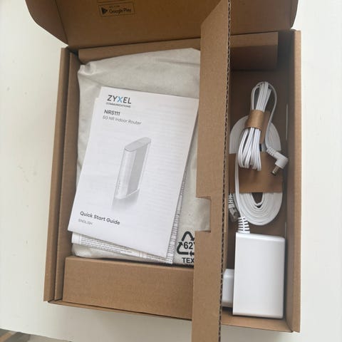 Medföljande tillbehör på bilderna inkluderar nätadapter, nätverkskabel och originalkartong.