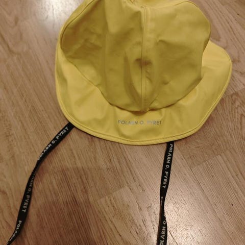 Polarn O. Pyret regnhatt /sydväst för barn i storlek 52 (2-6 år). Unisexmodell i blå polyester med skärm runtom och knytband under hakan.
