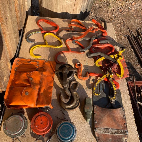 Säljer ett robust väggfäste för motorsågar. Hållaren hjälper dig att hänga upp sågen säkert i garaget eller förrådet.