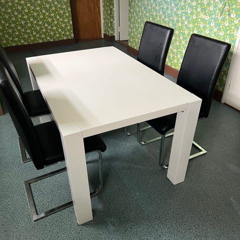 Söker bord med 4 stolar i svart el vita