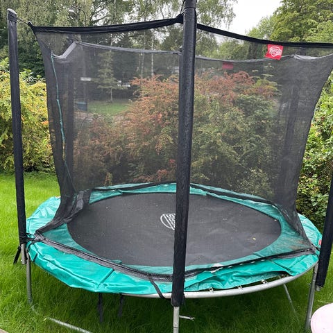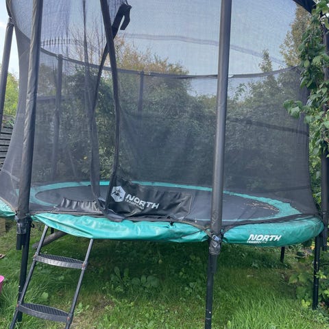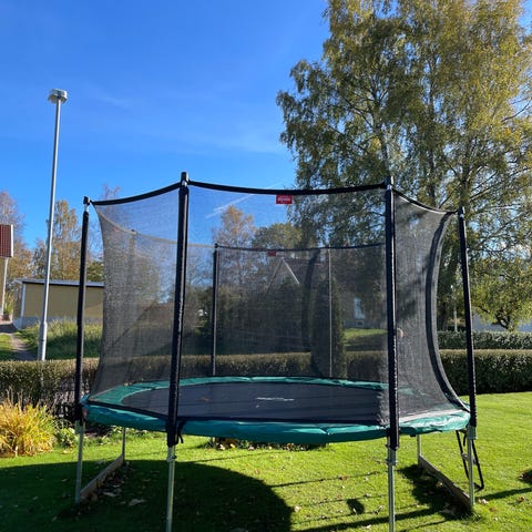 Studsmatta av mörket Berg med diameter 3.3 meter bortskänkes. Skyddsnöt medföljer ej.