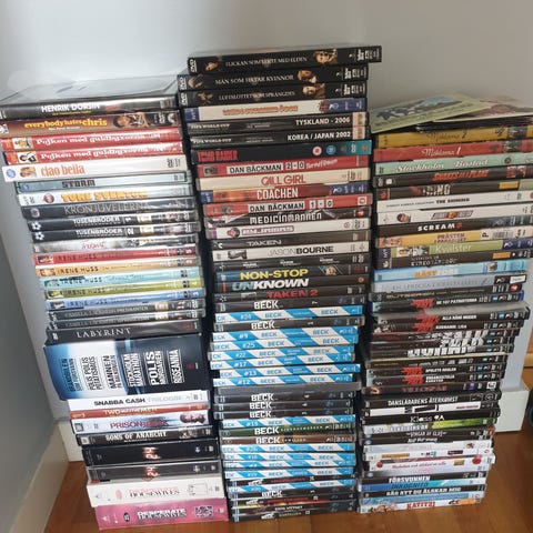 230 dvd:er i varierat skick, stor del f.d. Hyrfilmer