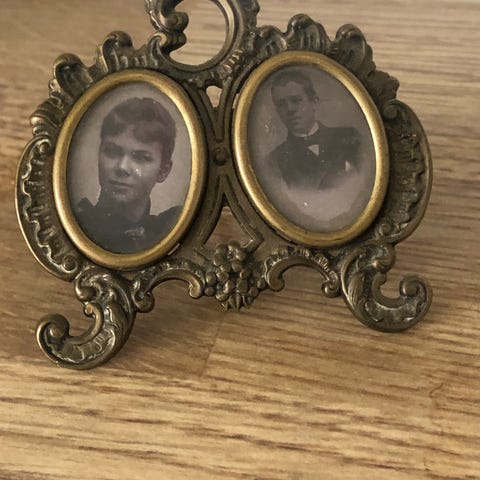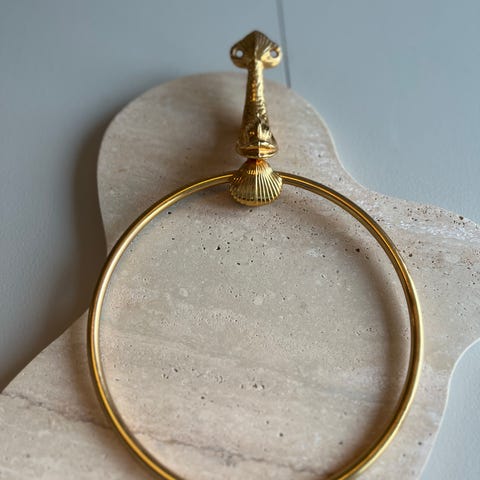 Handspegel i mässing från Ystad Metall signerad Carl-Einar Borgström. Troligtvis 1930-tal. Dekorplatta av speglande hjort.